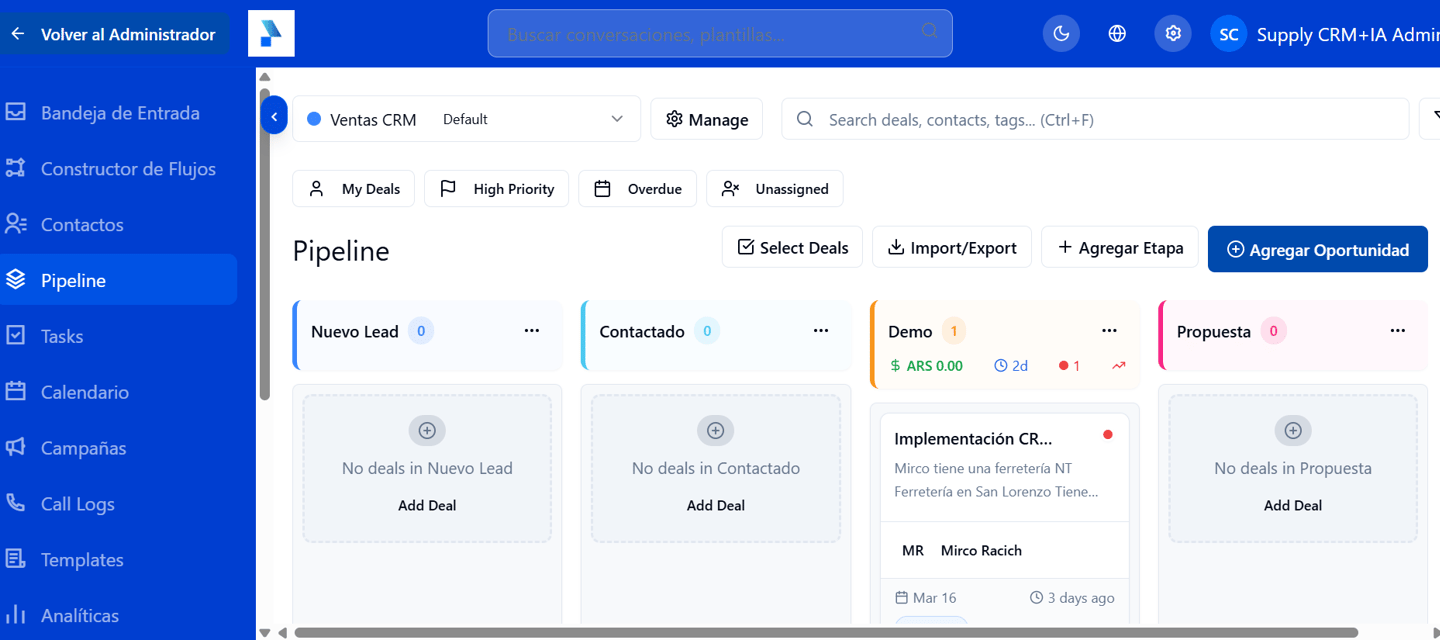 Te ayudamos a armar tu propio flujo IA dentro de Supply CRM